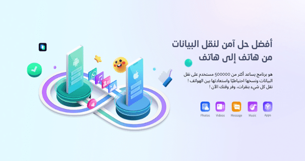 يعد برنامج MobileTrans من أفضل البرامج وأكثرها شهرة في مجال نقل البيانات بين الهواتف المحمولة من أي نوع. MobileTrans هو أفضل برنامج لنقل البيانات يضمن نقلًا شاملاً وآمنًا مهما كان نوع الهاتف الذي تريد النقل منه أو