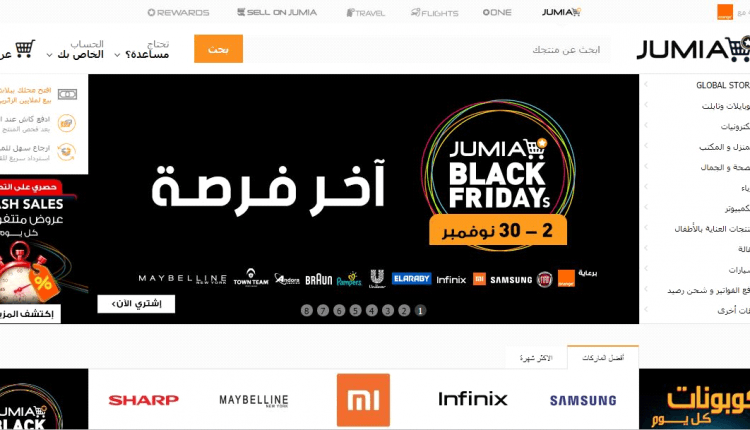موقع جوميا من اكبر المواقع التى تستطيع من خلالها التسوق عبر الانترنت في الجزء الأفريقي من العالم العربي