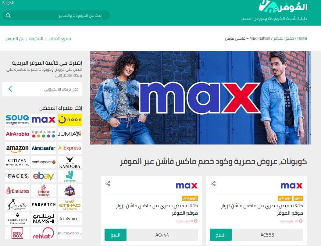 حاليا، يوجد على موقع الموفر كوبونين من فئة 15% على كافة المشتريات من متجر ماكس فاشن والتي يمكنك الإطلاع عليه من خلال زيارة متجر ماكس.