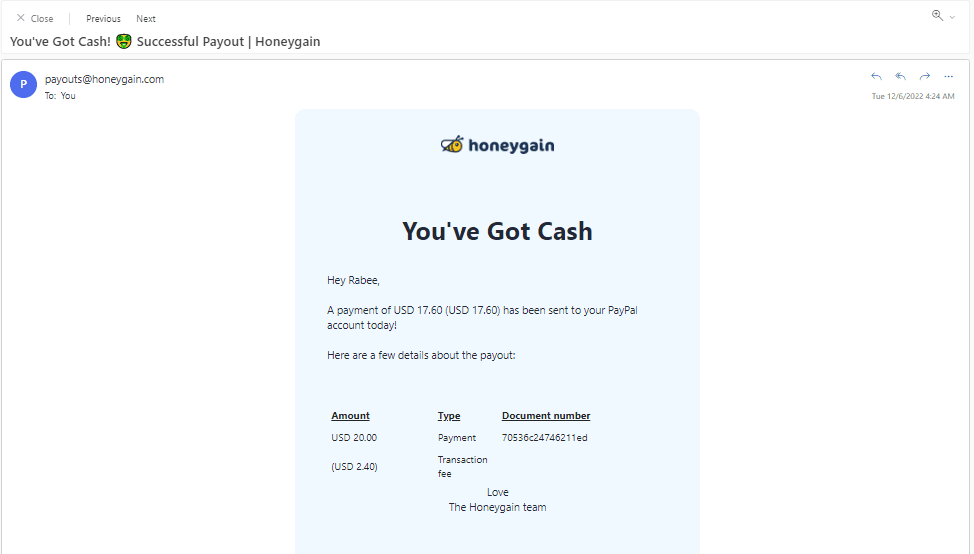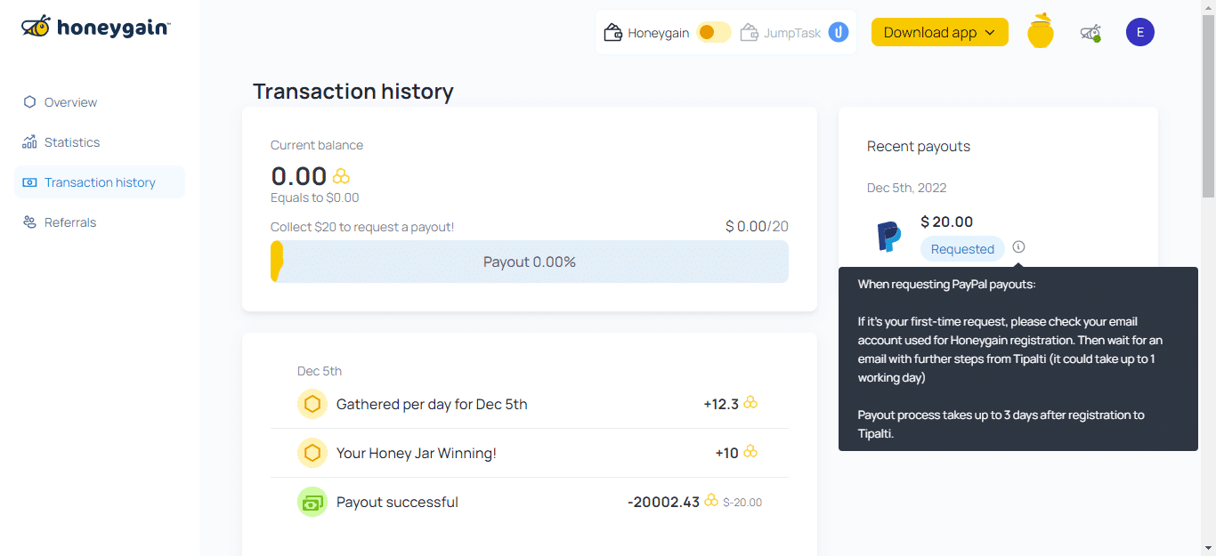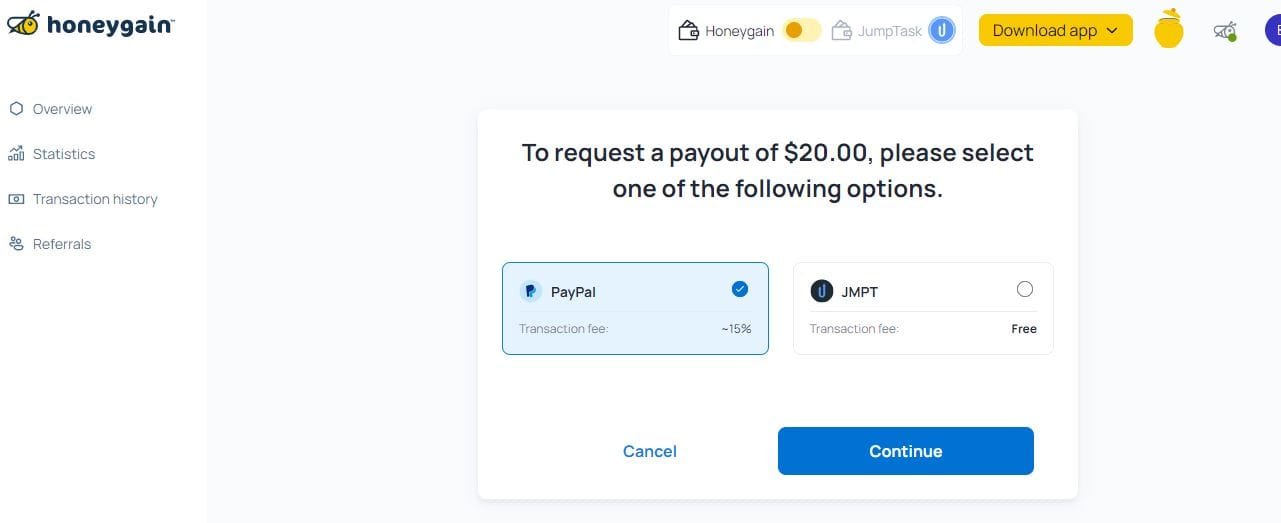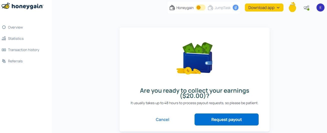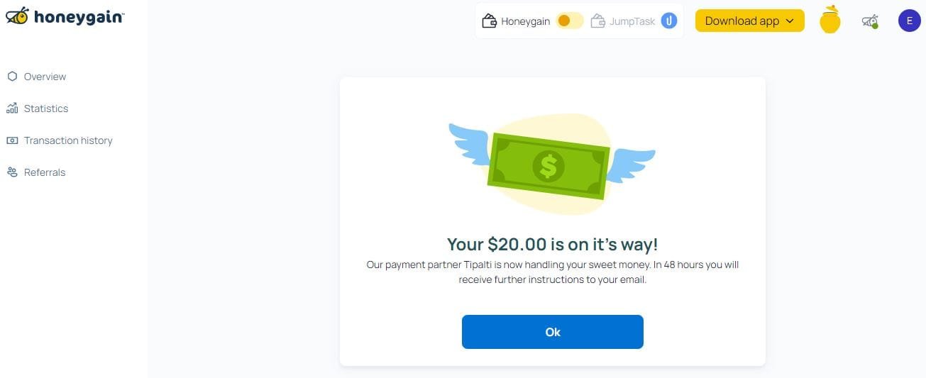 تطبيق Honeygain للربح من الإنترنت: إثبات السحب