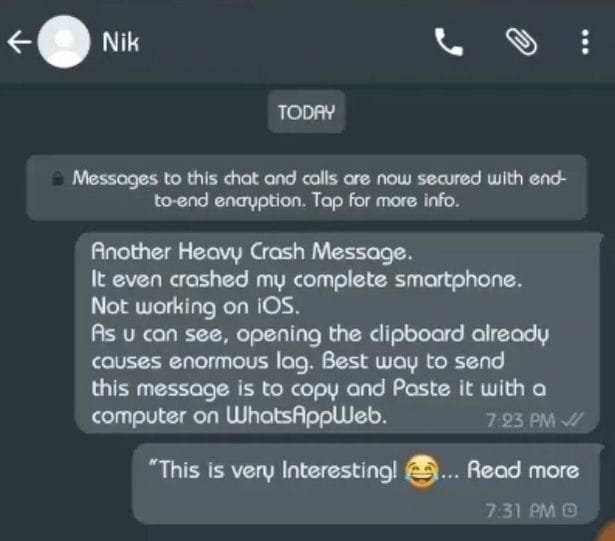 حتى الآن ، أبلغ المستخدمون أن “الرسالة القنبلة” كانت قادرة على إغلاق كل من إصدارات Android و iOS من WhatsApp ، ولكن فقط هواتف Android هي التي سقطت ضحية لهذه الثغرة في تطبيق WhatsApp.
