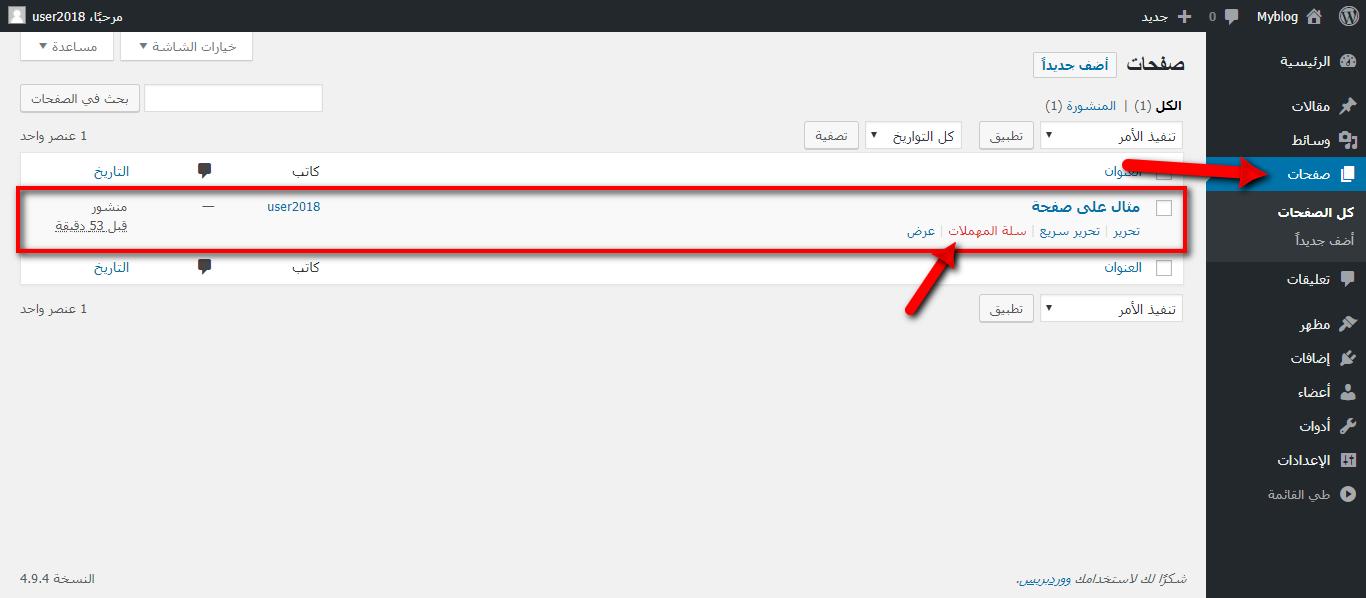 بعد تفعيل الاضافة (Plugin) علينا الان ان نقوم بالدخول على مقالات وسنجد هناك مقالة تجريبية ضروري جدا حذفها قبل ان تؤرشف مع مدونتنا وتظهر في محركات البحث.
